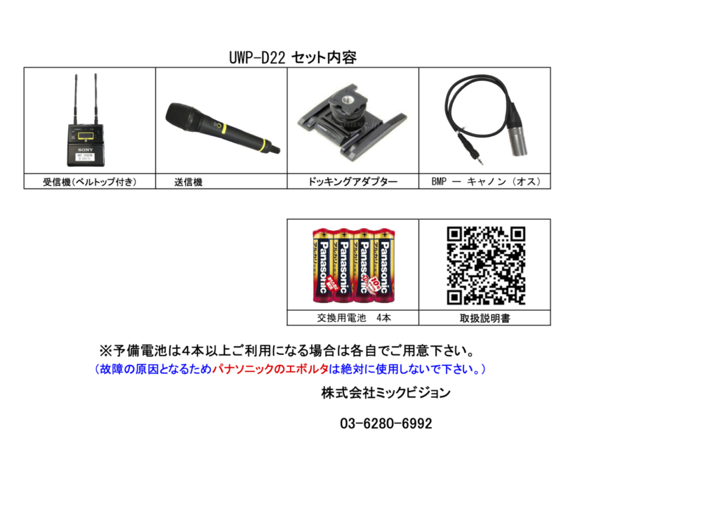 ※予備電池は4本以上ご利用になる場合は、各自でご用意ください。
